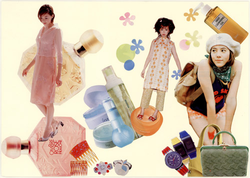 春・夏・秋・冬の4つのカラーイメージにあったアイテム(主にファッション&化粧品)を収集し、素材、質感を吟味しながら、